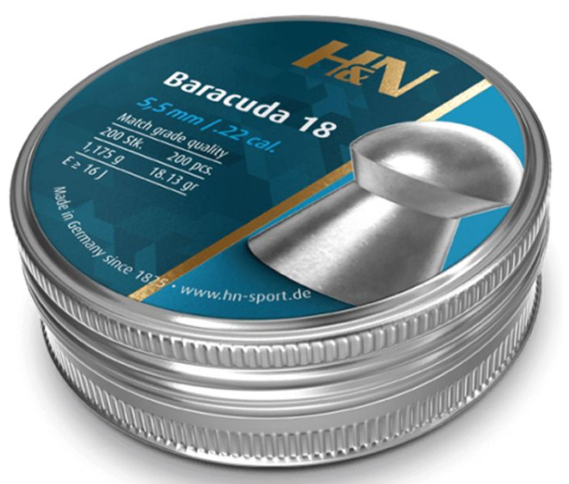 Are you looking for a highly accurate, hard hitting, medium weight pellet in .22 cal.? An extremely versatile and consistent pellet? Clean, with tight tolerances in weight and diameter? Your answer is the H&N Baracuda 18. The chosen weight of 18.13 grain / 1.175 g closes the gap between the well-known H&N Baracuda Match and H&N Field Target Trophy, making it a excellent all-purpose pellet. Available in the common head size of 5.52 mm.